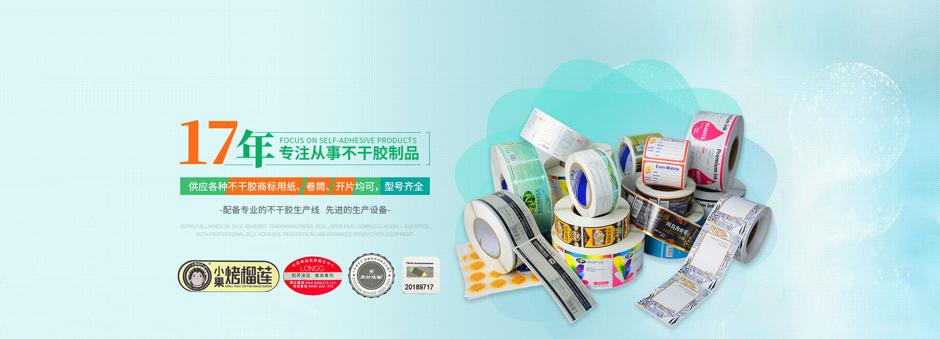 多年專業從事膠粘製品的研發,生產和經營。並能針對企業的要求,研發對應不幹膠商標用紙,卷筒,開片均可!也承接不幹膠商標的印刷,起印數量不限。