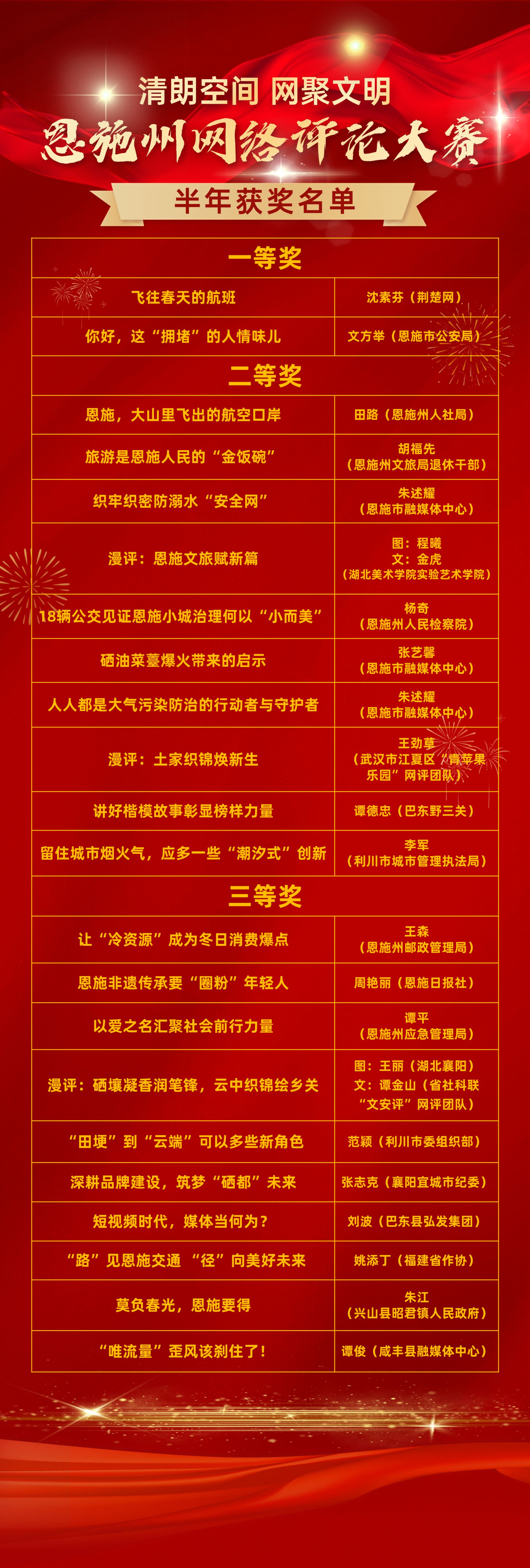 Jingchu.com(Hubei Daily)新闻(记者Shu Lang),ENSHI县在线审查竞赛的组织委员会宣布了2025年上半年的获奖者名单。